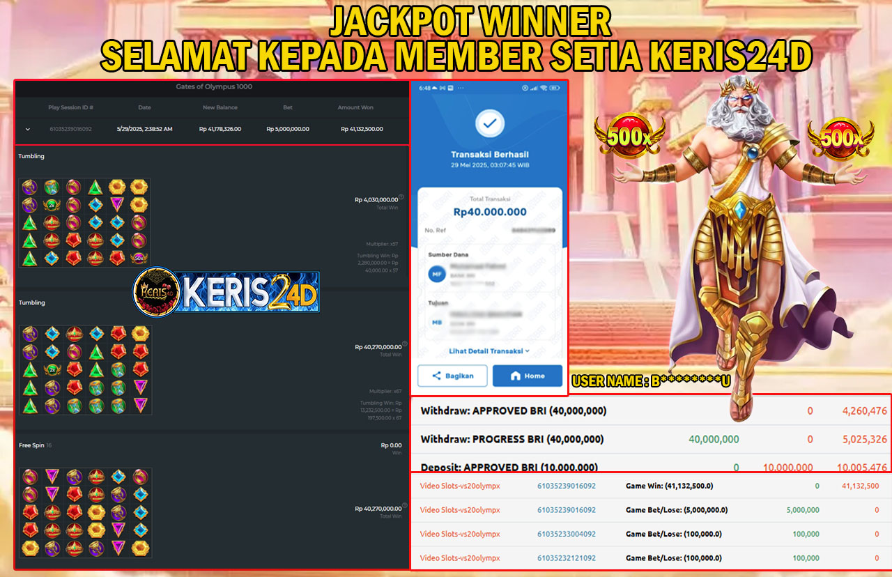 KERIS24D dikenal sebagai situs terpercaya yang selalu menghadirkan pengalaman bermain slot online yang aman, fair, dan berlisensi resmi. Di sini, kami tidak hanya sekadar memberikan janji, tapi bukti nyata berupa slip kemenangan yang dapat Anda lihat secara langsung.