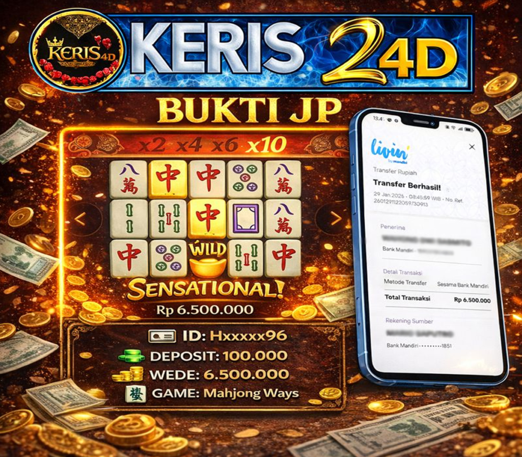 Setiap hari, member KERIS24D berhasil meraih jackpot besar dari berbagai provider slot ternama yang kami sediakan, seperti Pragmatic Play, Habanero, PG Soft, dan masih banyak lagi. Kami secara rutin menampilkan bukti screenshot atau rekapan kemenangan yang berhasil diraih, mulai dari kemenangan ratusan ribu hingga puluhan juta rupiah. Semua slip kemenangan ini kami hadirkan untuk membuktikan bahwa di KERIS24D, peluang menang itu nyata.