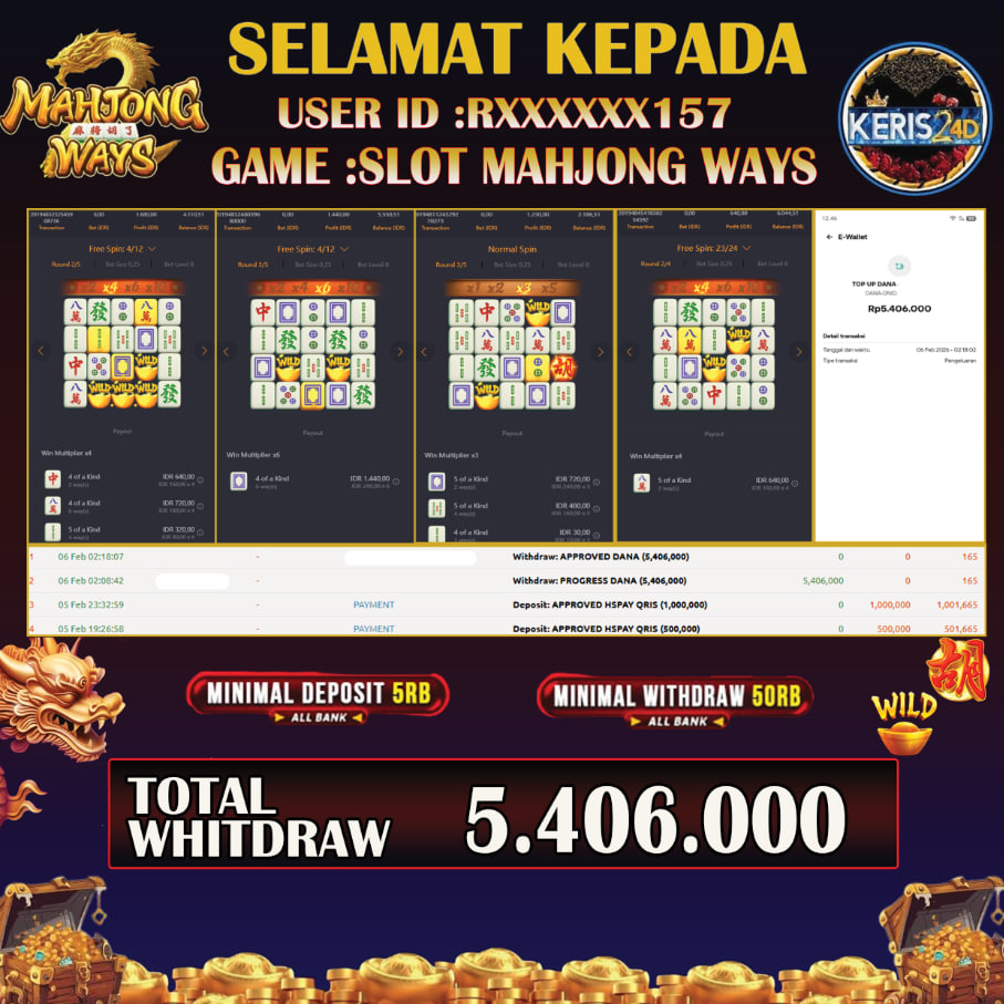 JACKPOT SLOT MAHJONG WAYS 06 FEBRUARI 2026, Jackpot Slot Gacor, Kemenangan Slot, Bukti Kemenangan Slot, Kemenangan Slot PgSoft, Menang Slot online, Slot Gacor, Situs Aman Terpercaya, WD Berapapun Pasti DI Bayar Tuntas, Maxwin Slot Online.