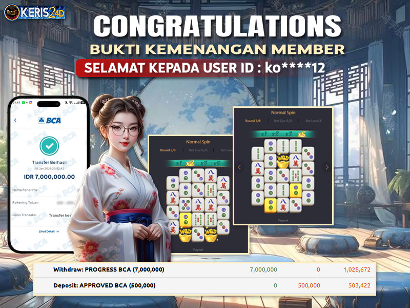 Setiap hari, member KERIS24D berhasil meraih jackpot besar dari berbagai provider slot ternama yang kami sediakan, seperti Pragmatic Play, Habanero, PG Soft, dan masih banyak lagi. Kami secara rutin menampilkan bukti screenshot atau rekapan kemenangan yang berhasil diraih, mulai dari kemenangan ratusan ribu hingga puluhan juta rupiah. Semua slip kemenangan ini kami hadirkan untuk membuktikan bahwa di KERIS24D, peluang menang itu nyata.