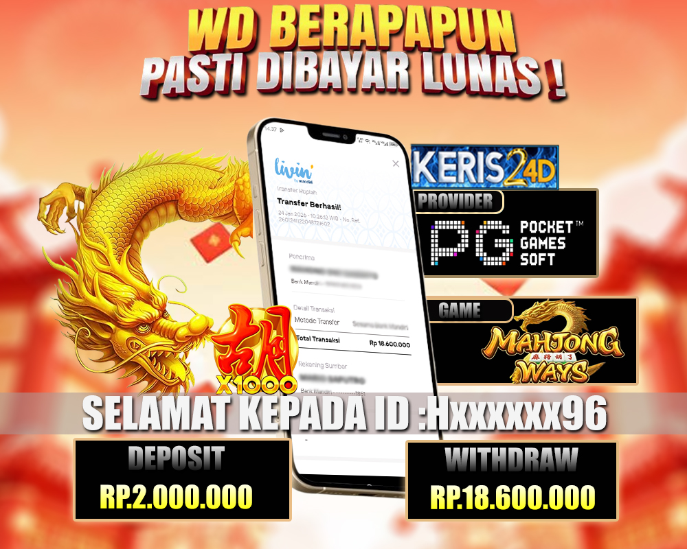 Satu lagi Bukti JP dan Pembarayan Sah Dan Dapat Dipertanggung Jawabkan, WD Berapapun Pasti Dibayar Lunas Hanya di Situs KERIS24D. Hati Hati Kepada Pihak Pihak Yang Mengatas namakan Pihak KERIS24D Untuk Melakukan Penipuan.