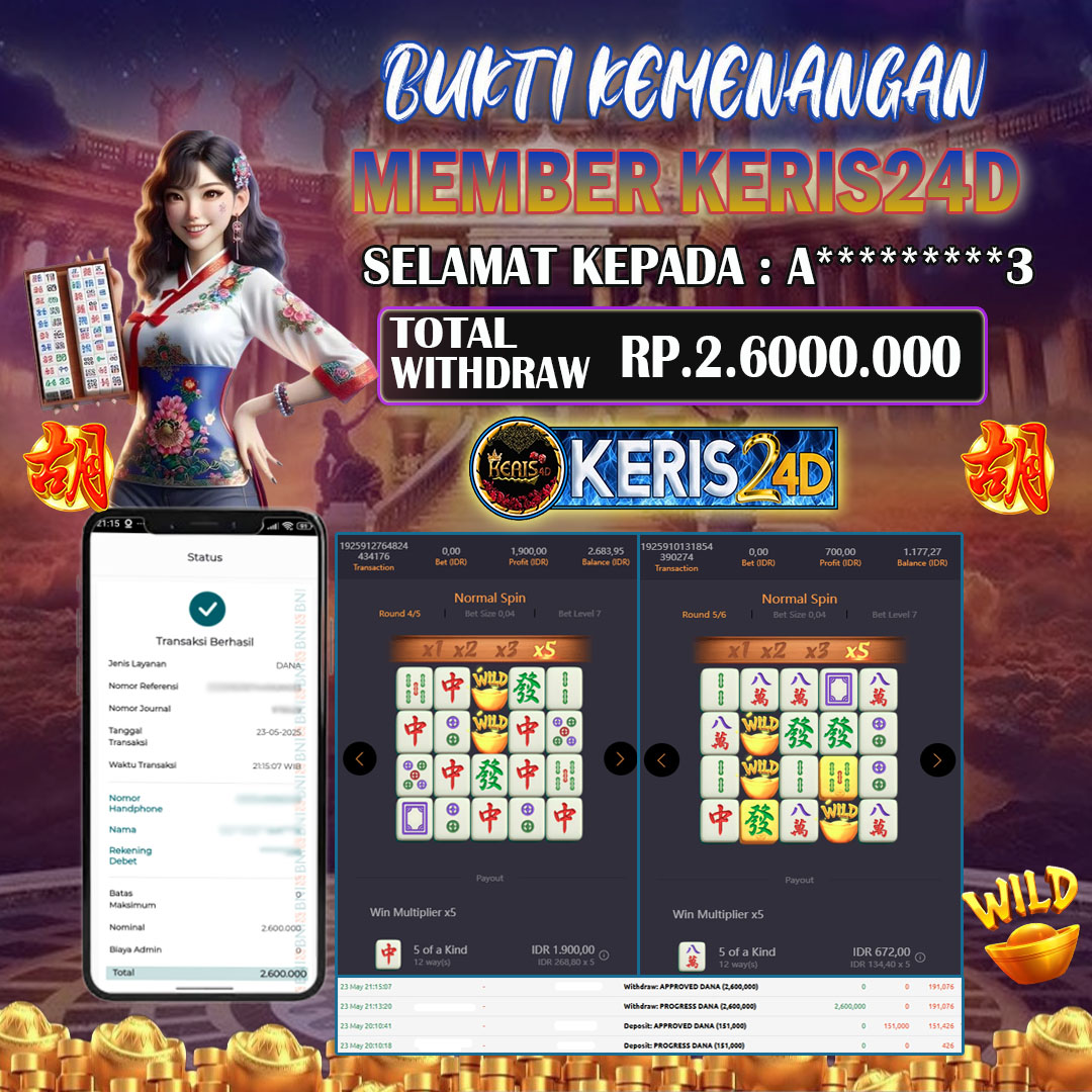 Setiap hari, member KERIS24D berhasil meraih jackpot besar dari berbagai provider slot ternama yang kami sediakan, seperti Pragmatic Play, Habanero, PG Soft, dan masih banyak lagi. Kami secara rutin menampilkan bukti screenshot atau rekapan kemenangan yang berhasil diraih, mulai dari kemenangan ratusan ribu hingga puluhan juta rupiah. Semua slip kemenangan ini kami hadirkan untuk membuktikan bahwa di KERIS24D, peluang menang itu nyata.